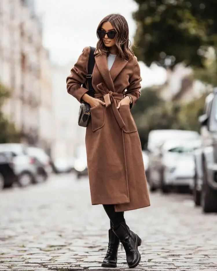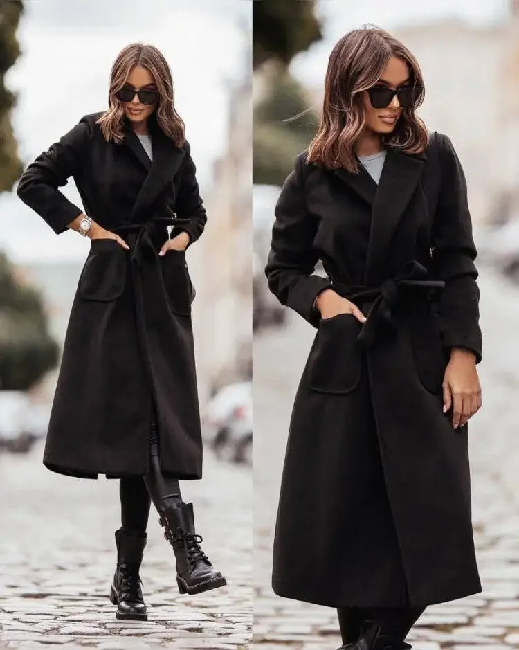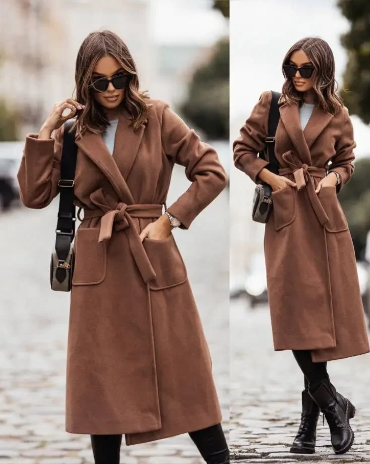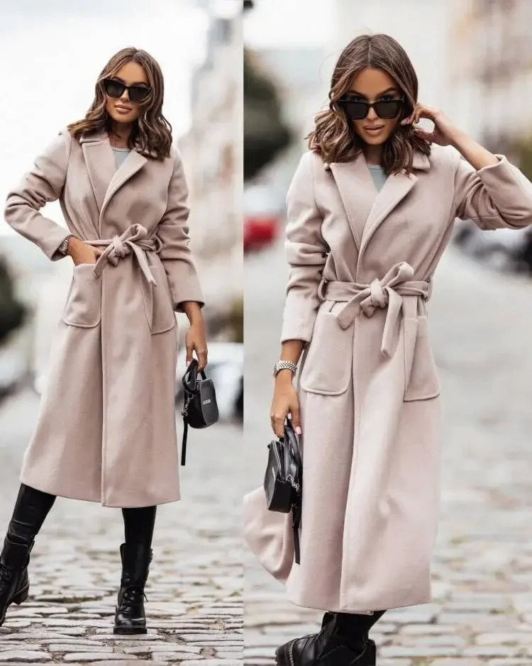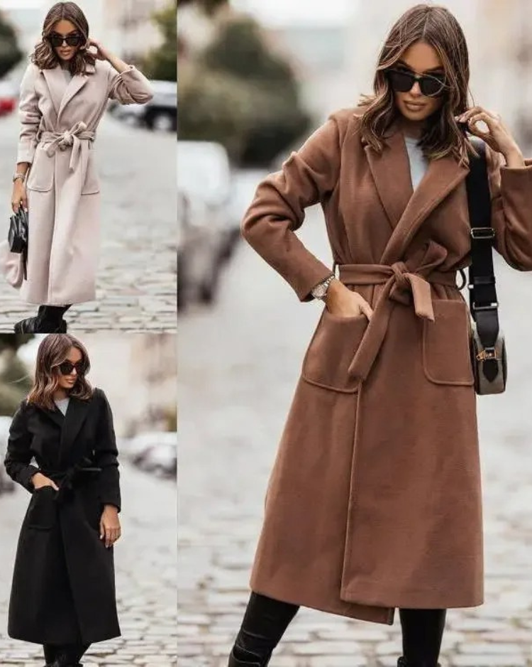 Eleganter Damenmantel - Stylischer Wintermantel mit Revers und Gürtel